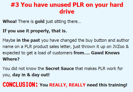 Then there are some who buy PLR products and make no money from them. That could be because they go into that forgotten folder, labelled PLR , never to be seen again. Or maybe they just change the buy button & name on the sales page and expect customers to come from nowhere.